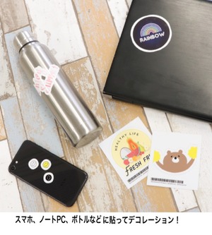 スマートフォンやノートPC、飲料ボトル、カバン、ヘルメットなどに。楽しくデコレーション出来ます!